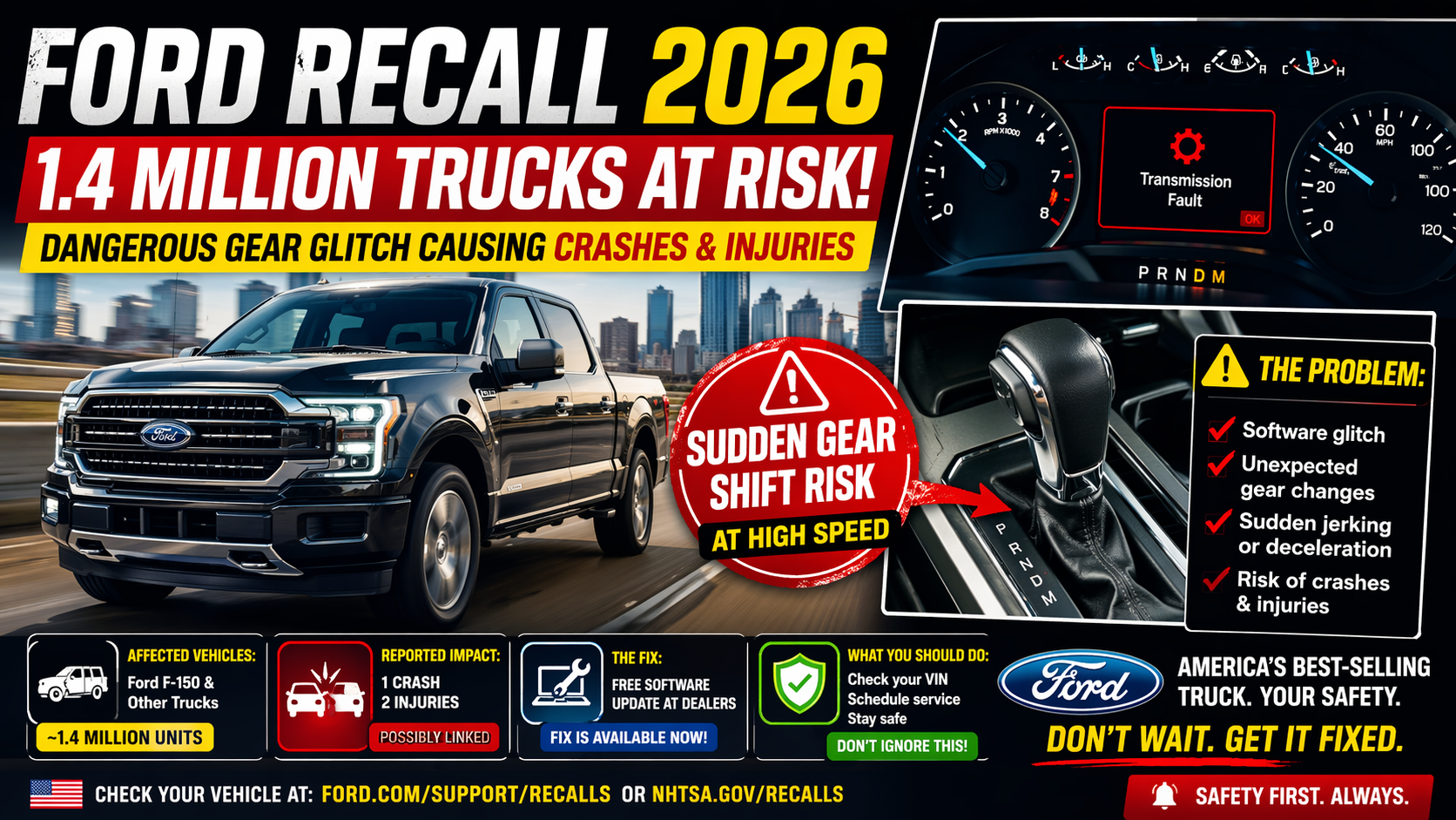 Ford Motor Company has announced a massive recall affecting around 1.4 million vehicles in the United States — mainly its best-selling trucks like the F-150.